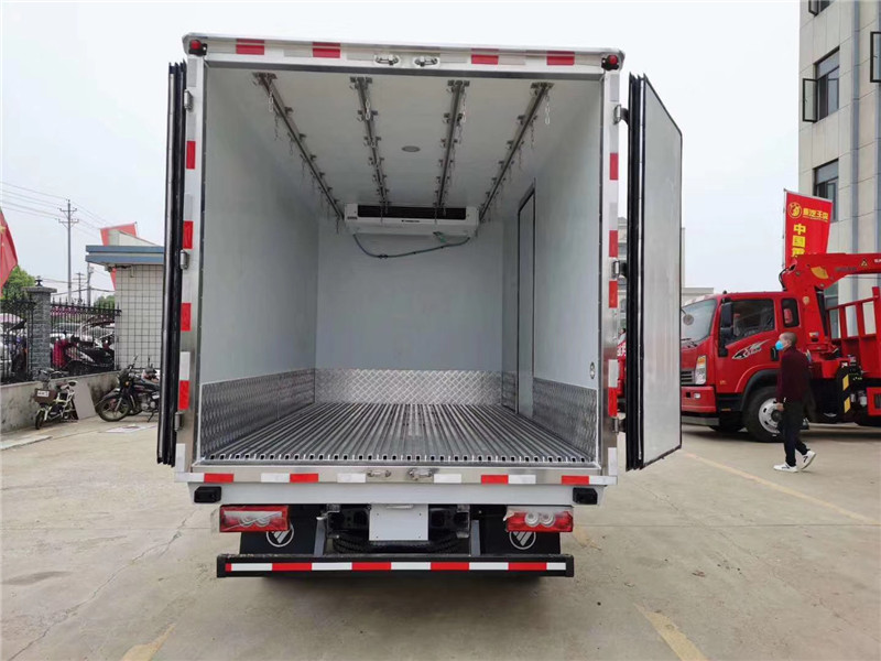箱体采用我公司液压吸附一体成型生产线制造,保温性能达到****标准厢体内外面料采用新款纳米玻璃钢(不吸光、隔热性好、硬度强、抗氧化),厢体厚度为8cm,内衬骨架为防锈处理武钢优质轻钢型材,保温材料为无空隙填充聚氨酯发泡,厢体底部为铝合金花纹板或选平面纳米玻璃钢,厢体采用镀锌不锈钢包角,加厚型铝合金包边,后门框为不锈钢,加厚型不锈钢后门合页及锁件,厢体内部采用LED照明灯及厢体示宽灯。