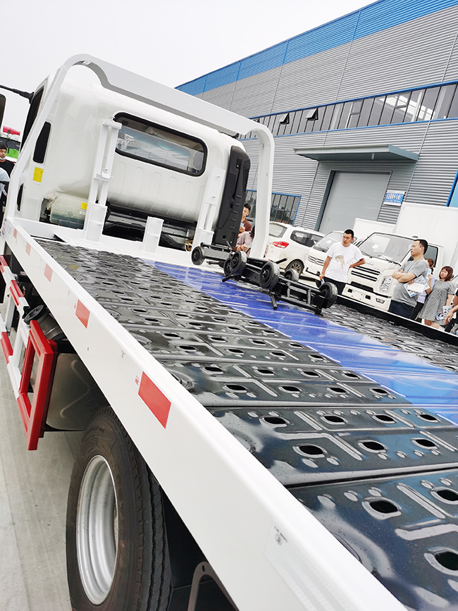 平板采用3PL折叠冲压式平板,一拖二型,双侧联动操作装置。可背3吨,拖3吨,后托臂可托举2吨。多路阀、平衡阀采用进口液压件(意大利海德) 后工作灯3只,1个40KN液压绞盘(25米钢丝绳),1个工具箱,配2个小车,L型抱胎架1对,6根捆绑带,托叉1对,托叉座1对。链钩1条。后托举机构(可拆卸),主板长4.2米。